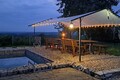 Эта комната подойдёт для семьи с ребенком или просто для тех, кто не привык себя ограничивать. Большая деревянная кровать и раскладное кресло кровать даст вам отличную возможность выспаться и отдохнуть на лоне природы. . Три окна , одно из которых около четырех метров, открывают великолепный обзор холмистого ландшафта пересеченого сверкающими излучинами реки. Это комната имеет самостоятельный выход и высокое крыльцо. Кроме того имеется терраса с деревянными креслами и столиком. Полноценный санузел рядом с душем и горячей водой.