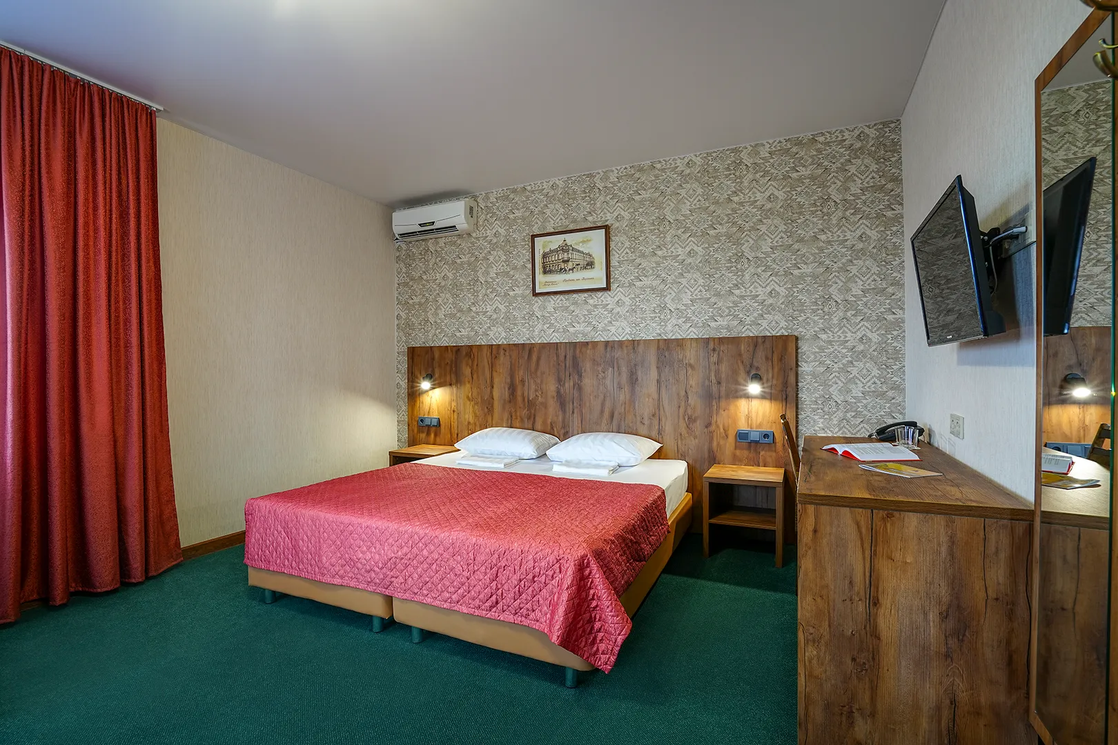 В номере 1 двуспальная кровать или 2 односпальных кровати, 1 диван. Номер с кондиционером, мини-холодильником, телевизором с плоским экраном с кабельными каналами. В собственной ванной комнате предоставляются бесплатные туалетно-косметические принадлежности и тапочки.